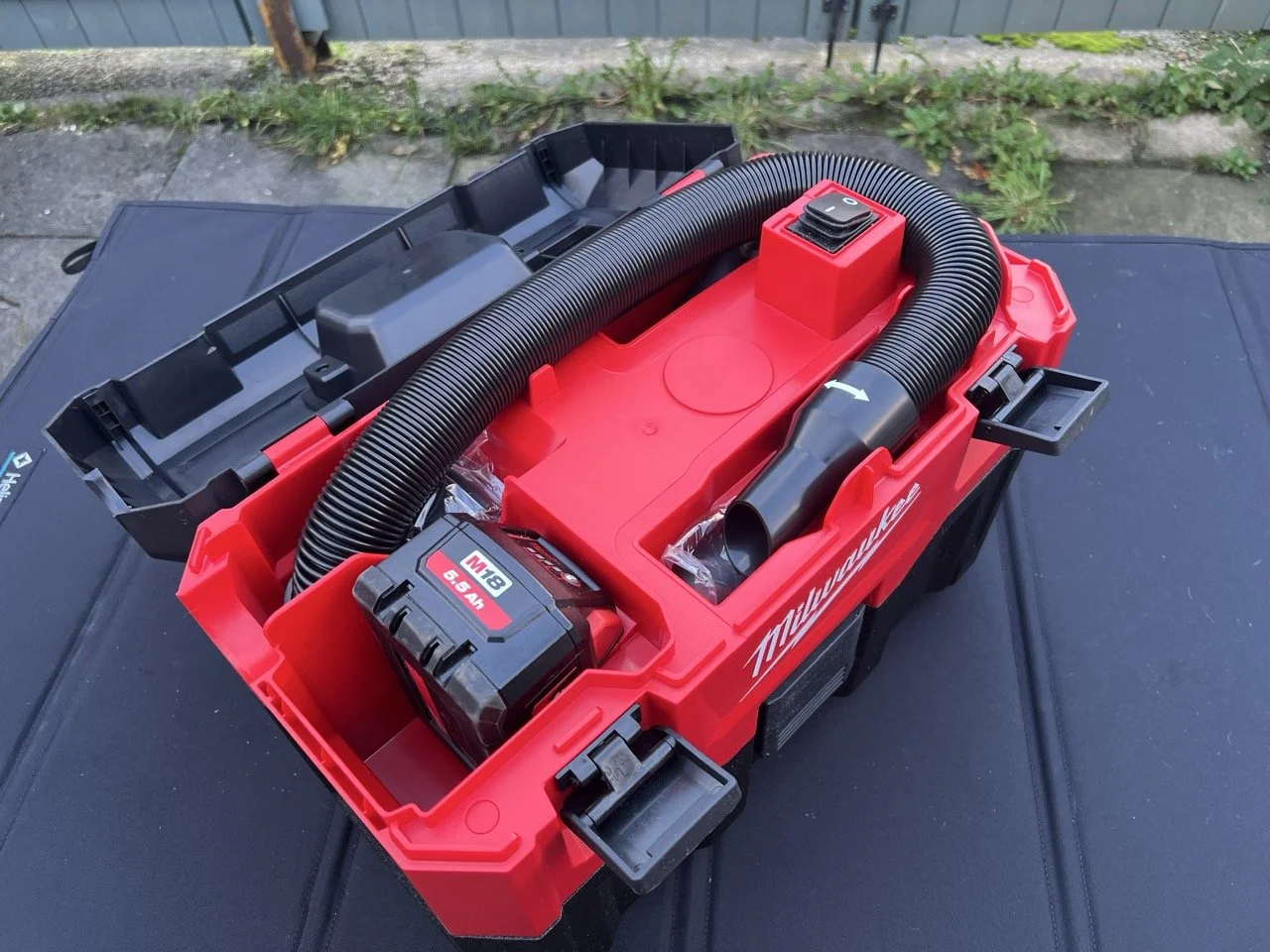 Typical Milwaukee really - solid, chunky, and red enough to make your eyes water. It’s not small, but it’s designed to be lugged about, so the sturdy carry handle and tidy, rectangular shape make sense. Open the lid and there’s space onboard for the hose, filter, and attachments, which means fewer bits to lose. It feels more “site tool” than “household appliance,” but that’s exactly what you want when you’re vacuuming up gravel, dried mud, and the occasional rogue woodlouse from your 4x4.