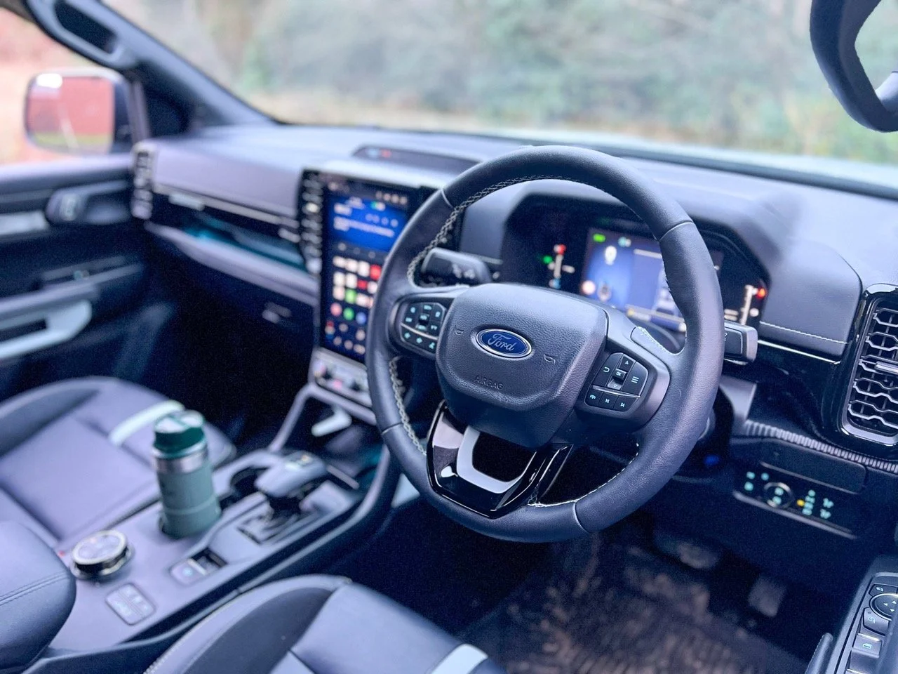 The electric motor’s immediate torque is actually a huge benefit off-road. That low-speed control lets you creep up rocks, over roots, or through sloppy clay with the sort of finesse normally reserved for ballet dancers and people defusing bombs. Combine that with the usual Ranger 4x4 system, locking rear diff, and decent clearance, and you’ve got a pickup that’s as happy on a green lane as it is parked outside Waitrose.