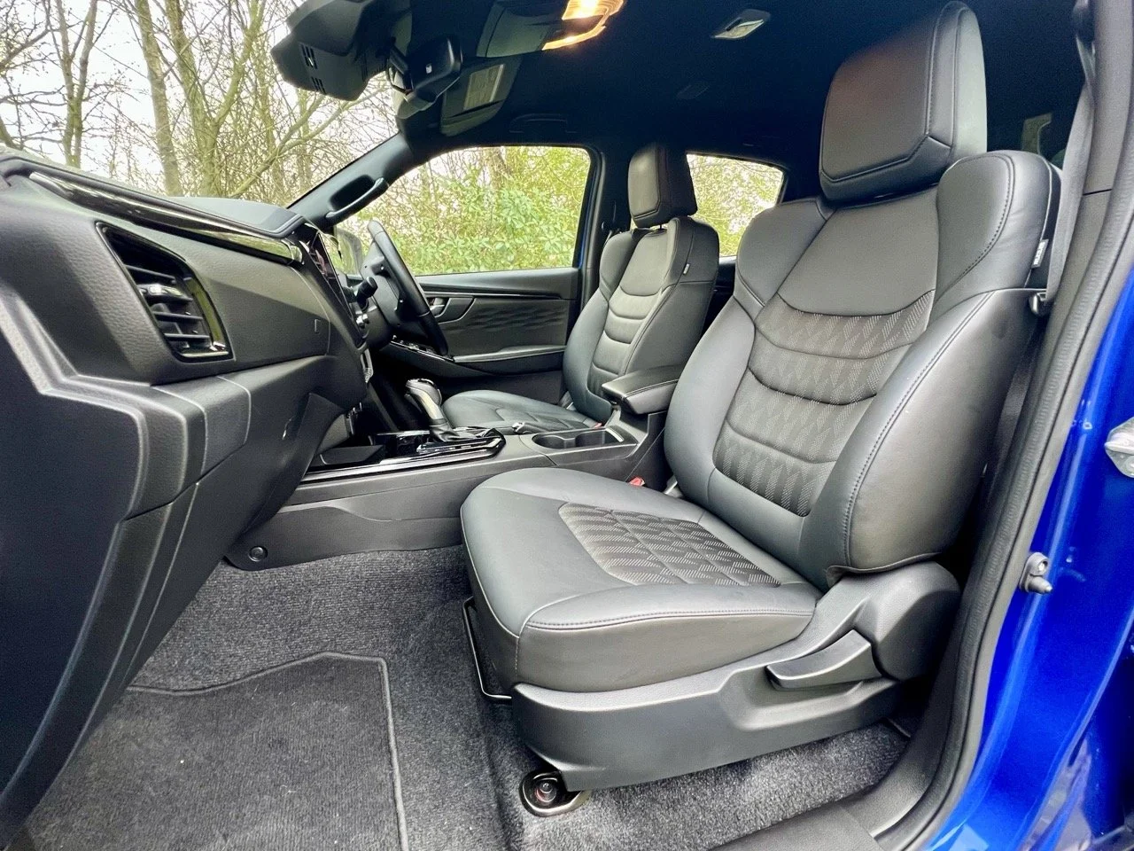 The seats are comfortable, supportive, and heated. Perfect for thawing out after a day on the moors or laning in a press car you’re trying not to scrape. You sit high, with good visibility, and the cabin feels sturdily built, as if designed by people who know exactly how owners treat their trucks.