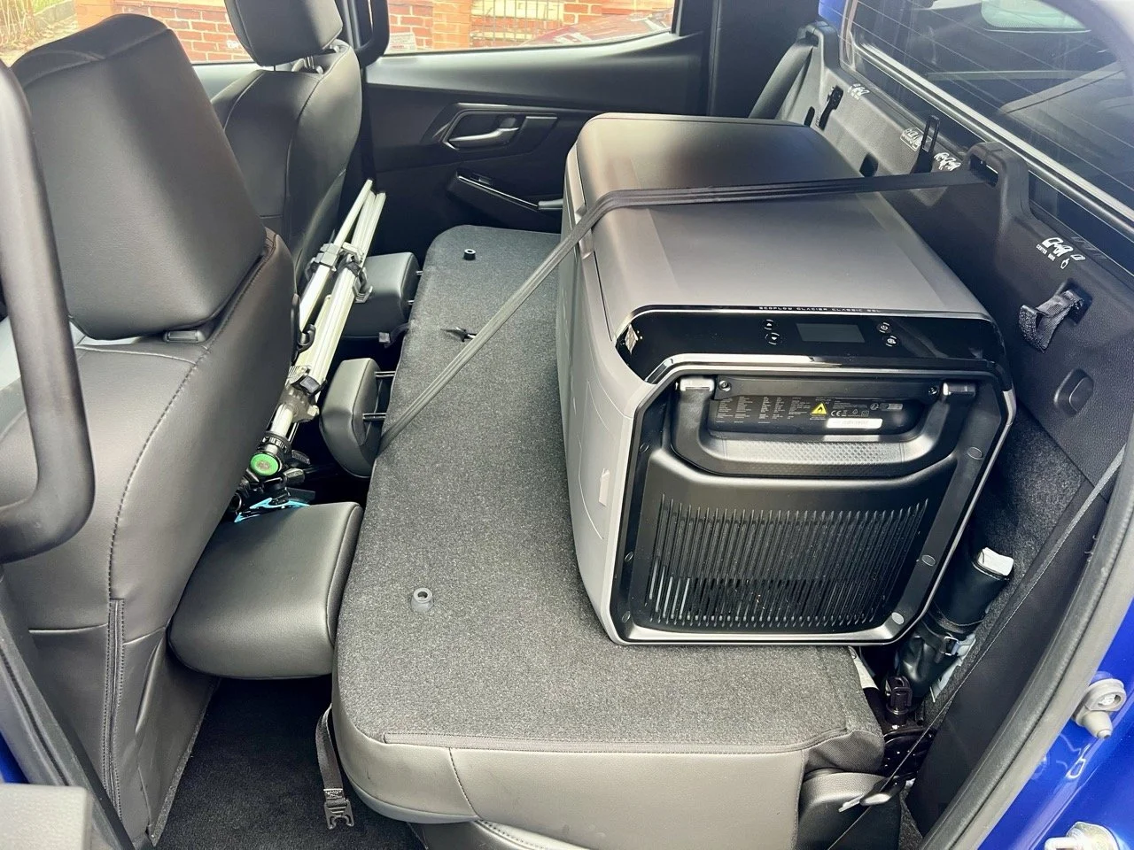 Inside, storage is plentiful: cupholders (no less than six up front!), cubbies, glovebox, centre bin big enough for snacks, tools, and emergency pies. Add in the clever rear seat fold-flat function and the under-seat storage, and the V-Cross becomes a genuinely versatile space. It’s a proper “people plus kit” cab for muddy dogs, work gear, or weekend adventures.