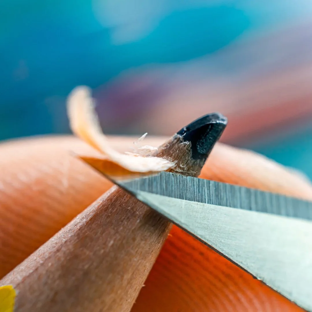 Sharpening pencils, properly, with a long curl, not chewed up by an electric whirring nightmare.