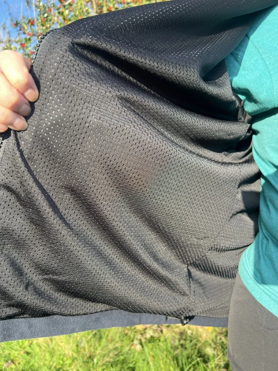 This jacket is 100% waterproof, breathable and completely windproof. It performed brilliantly in our changeable British weather - the loose mesh look polyester tricot lining kept me from getting too hot when the sun shined, and the outer kept me lovely and dry when the heavens opened, and it definitely offered more warmth than your average waterproof.