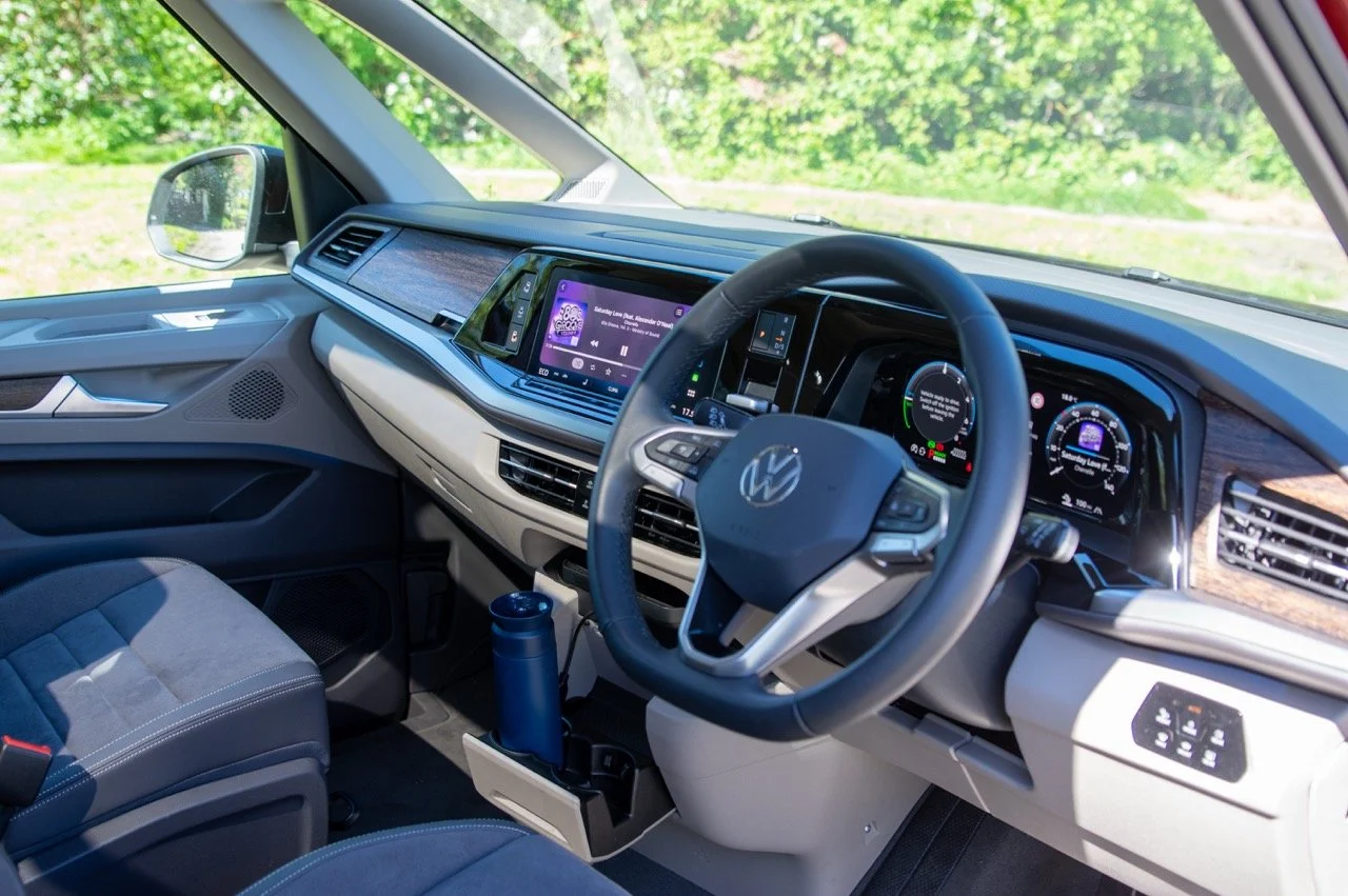 But venture beyond that, onto muddy tracks, gravel paths, or anything resembling a green lane, and the Multivan starts to look a bit sheepish. Not because traction is limited when things get slippery, no, just its ground clearance is quite modest. It’ll handle campsites, farm tracks, and slightly questionable National Trust car parks without any drama, but proper off-roading? Not its game.