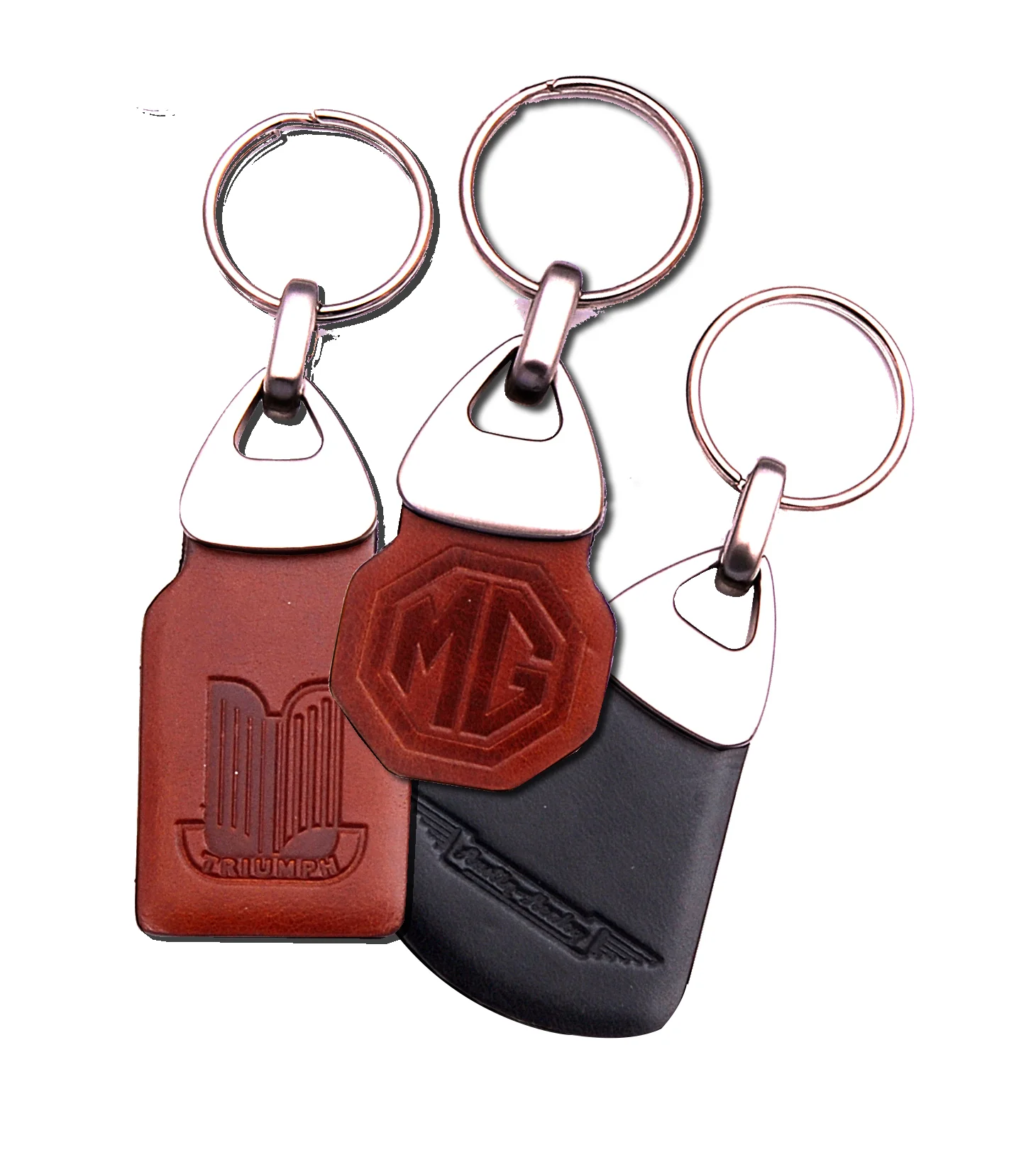 The perfect stocking presents, these smart, quality rings have leather fobs available in either brown or black and embossed with MG, Triumph or Austin-Healey logos. £9.50 inc VAT.